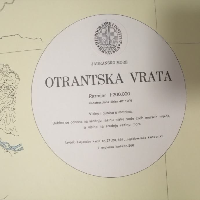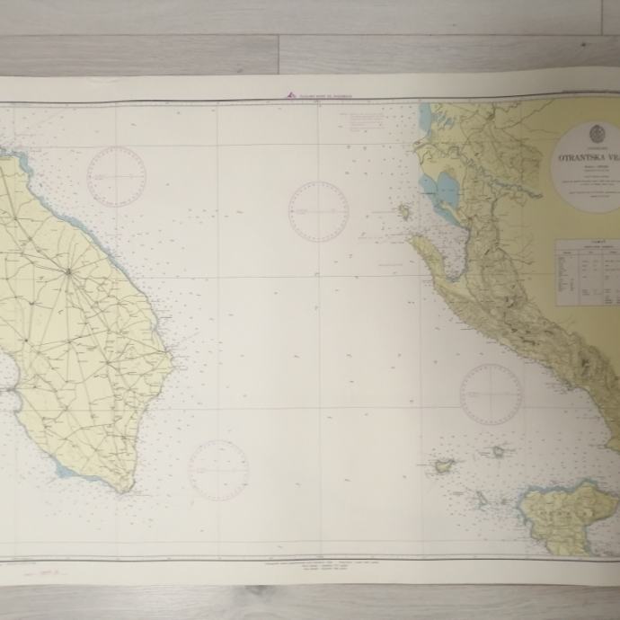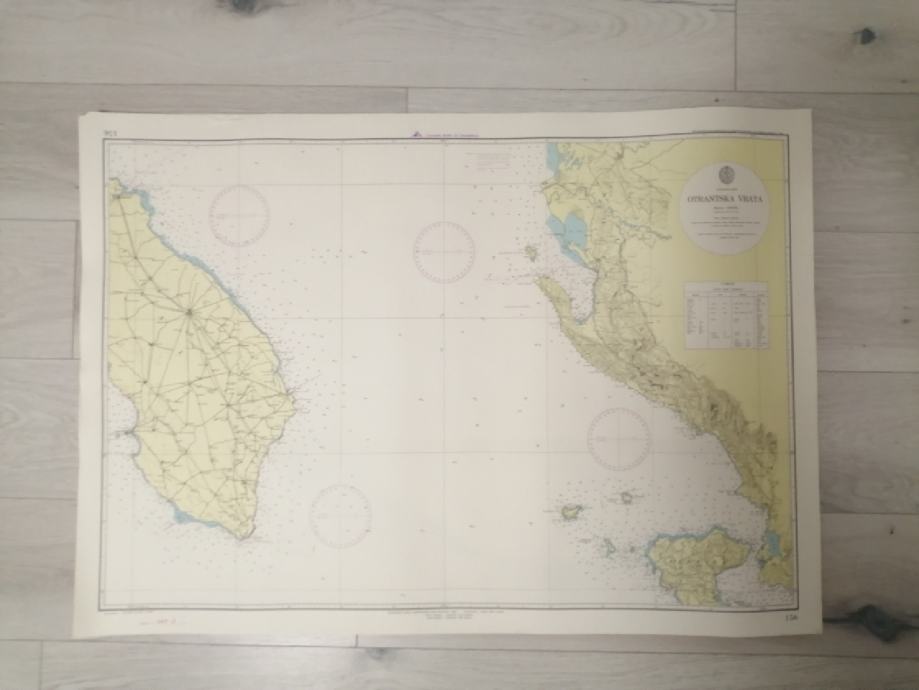 Karta 156.Otrantska vrata, dimenzija 100 x70 cm, izdanje Hidrografski institut Jugoslavenske ratne mornarice-Split, pogledajte i ostale moje oglase, šaljem poštom, tekući