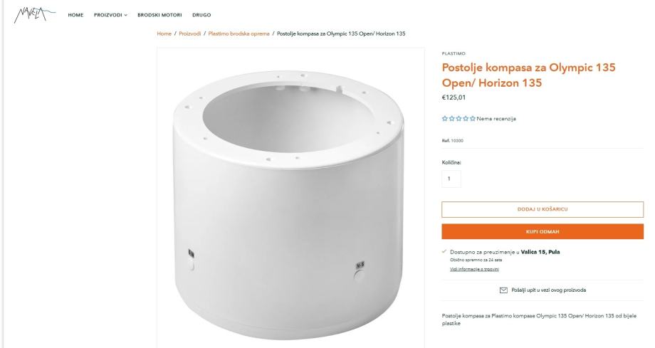 Pojedinačne cijene: kompas = 60€/kom., postolje = 30€/kom., zaštitna kapa = 15€/kom.