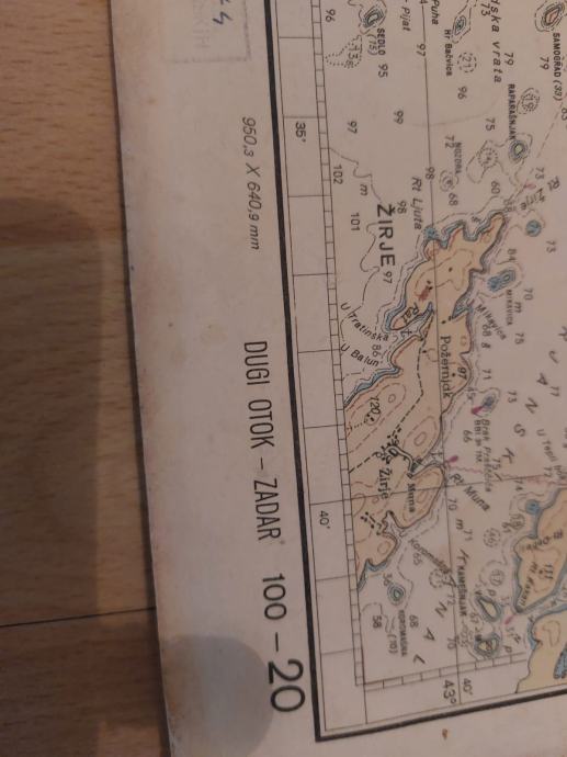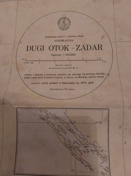 Nautička karta Dugi otok - Zadar, lošije očuvana, Hidrografski institut JRM Split, 1.12.1970.