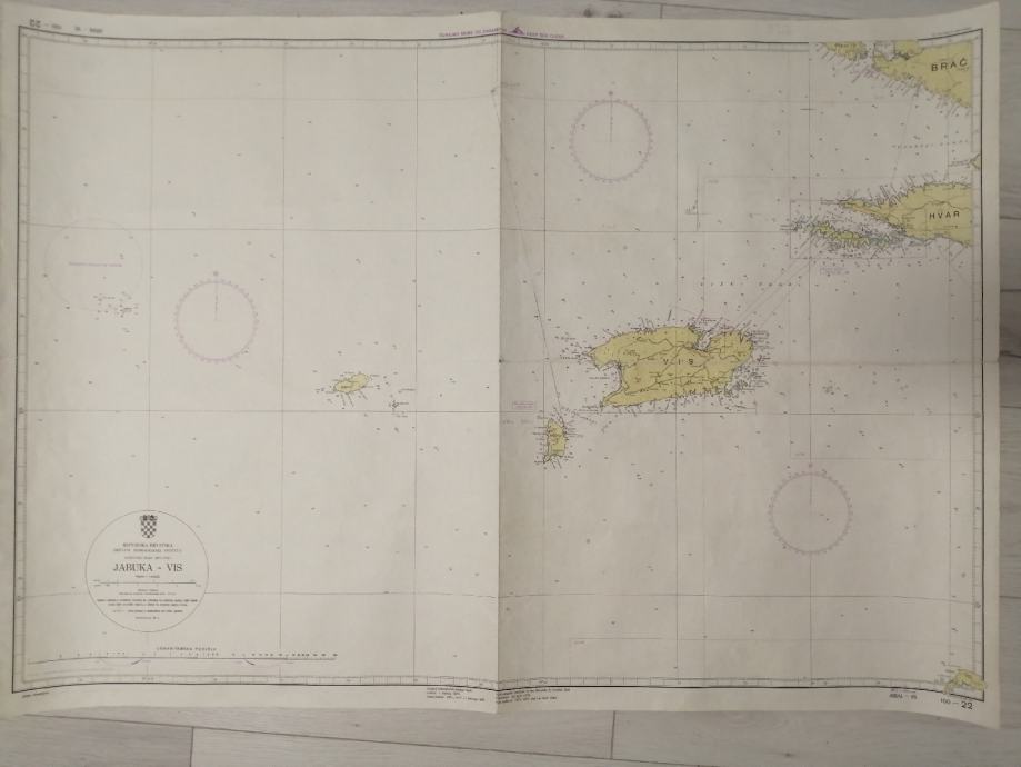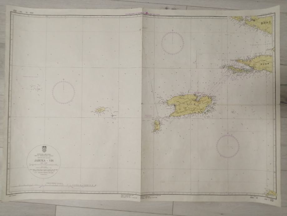 Nautička karta-100-22- izdanje hidrografski institut-Split, dimenzije karte 100x70 cm. Pogledajte i ostale moje oglase,