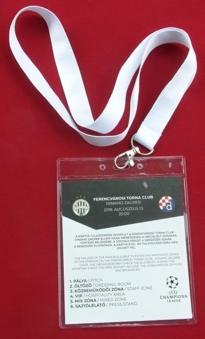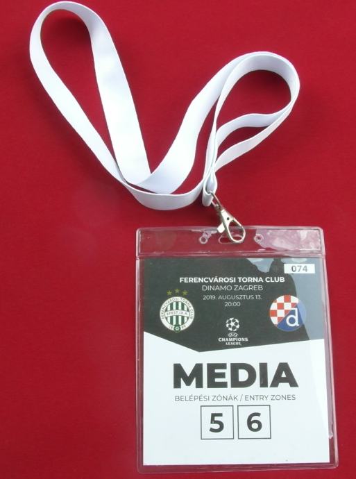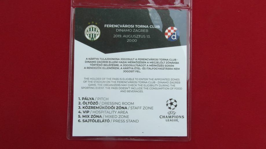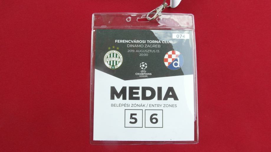 Akreditacija za utakmicu Lige prvaka Ferenvarosi- Dinamo Zagreb 13.08.2019 (rezultat 0: 4)