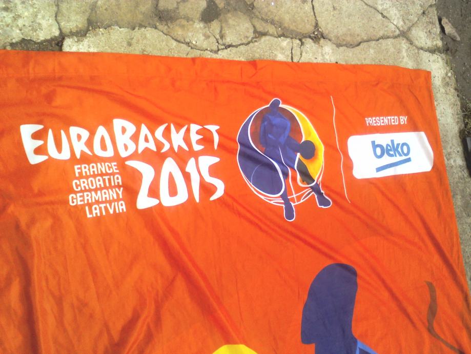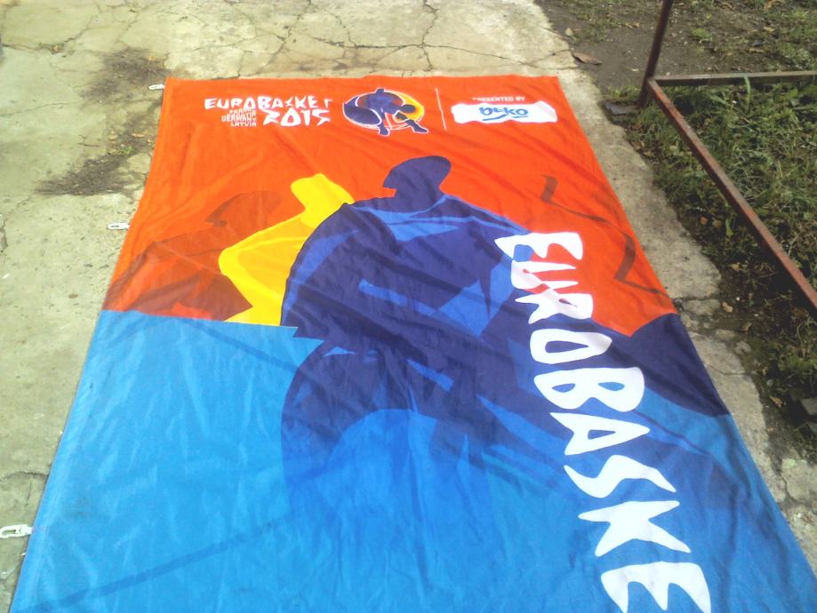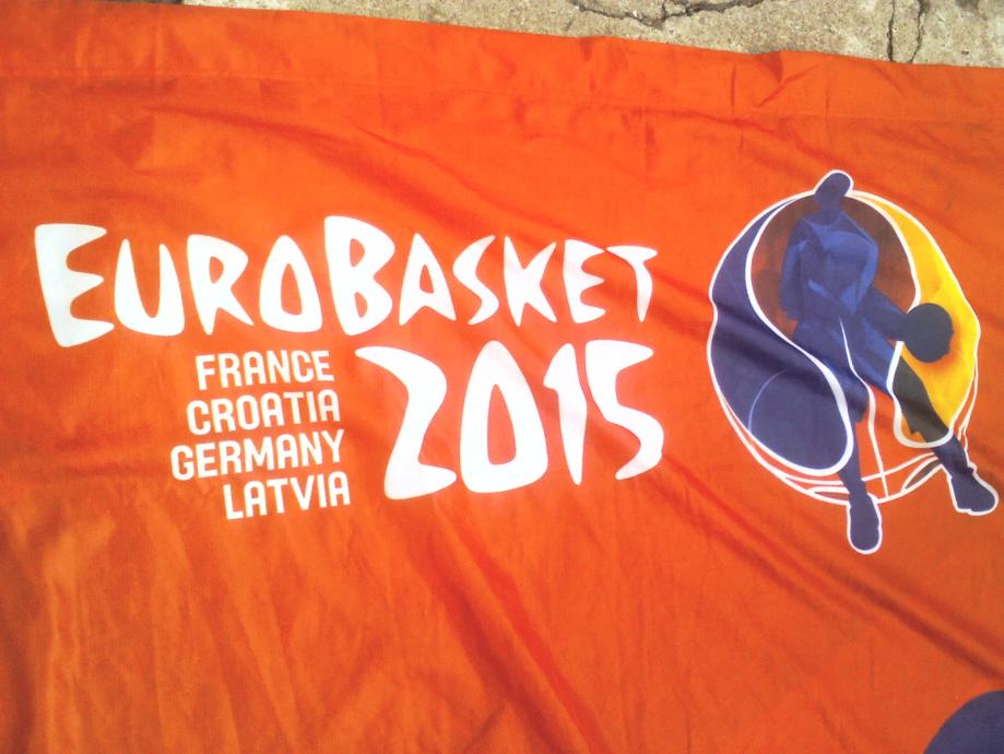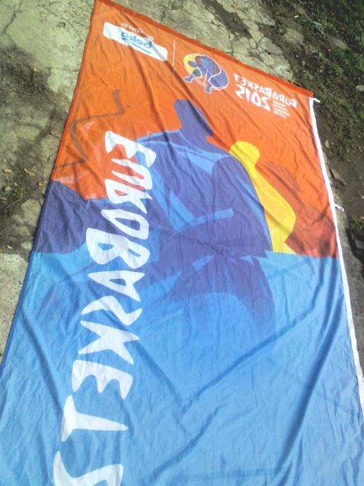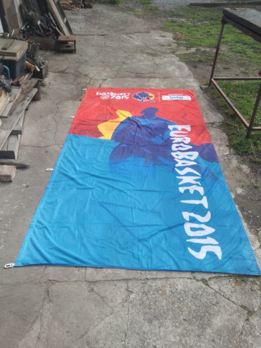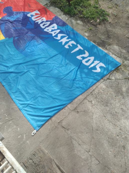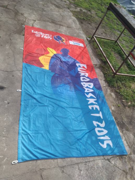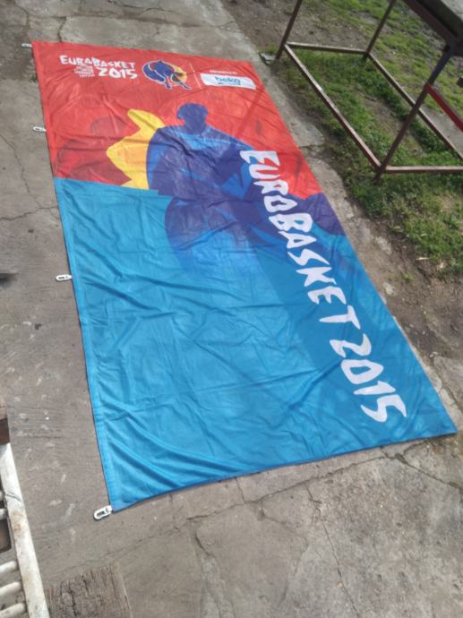 Orginal zastava sa Eurobasket 2015 dimenzija 1,5x3m, šaljem poštom nakon uplate ,pouzečem ne šaljem, cijena 30€ sa poštarinom.