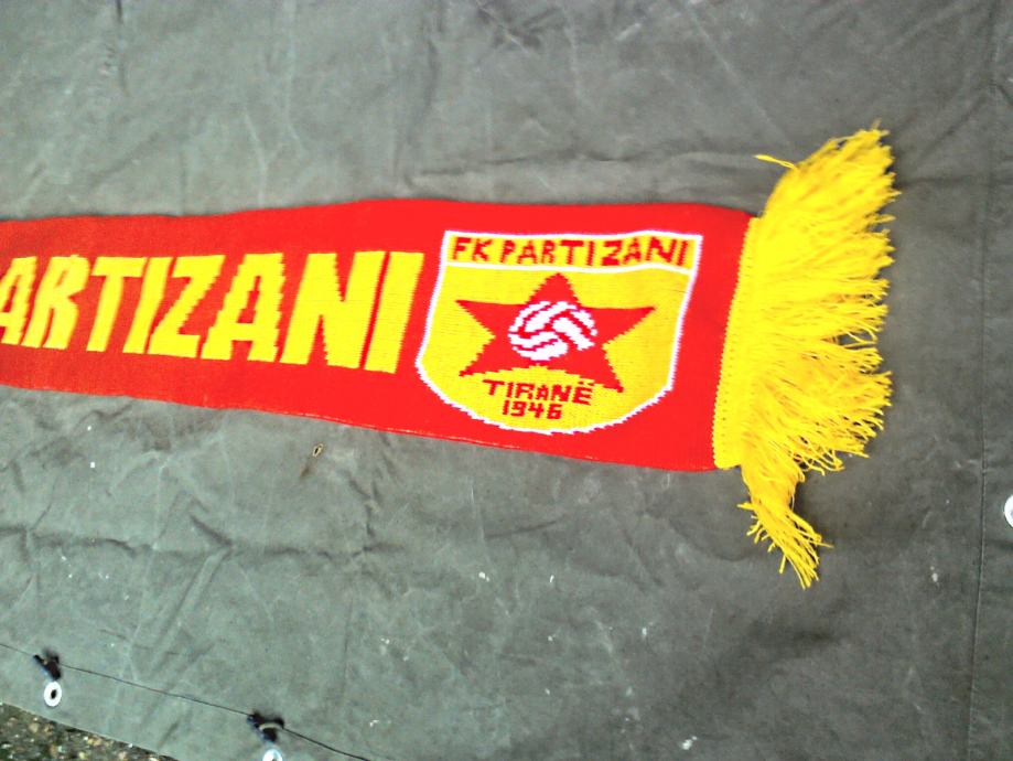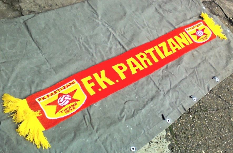 Novi nekorišten kvalitetan vuneni debeli dupli obostrani navijački šal FK PARTIZANI 1946 TIRANE ALBANIA. 1 Albanska liga.