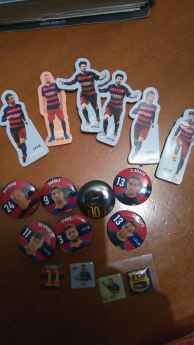 3. 7 bedževa: C. Bravo (2 kom), Leo Messi, Neymar Jr., Suarez, Pique, Mathieu - 0,5 eura/kom