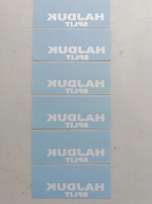 Hajduk Split natpis (bijela slova, za tamniju podlogu, šorc, trenerku) veličine 10 x 2,5cm 6kom 3€.