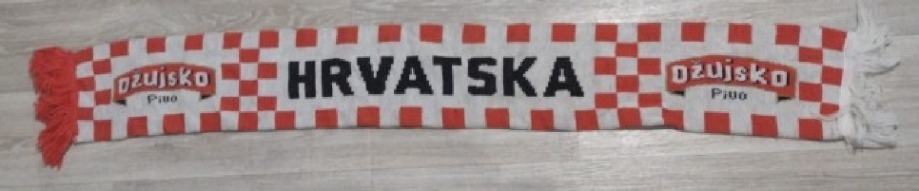 HRVATSKA Ožujsko pivo dvostrani crveno-bijeli rabljeni navijački šal .