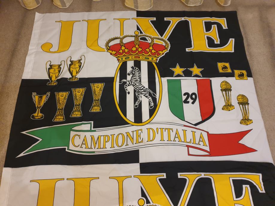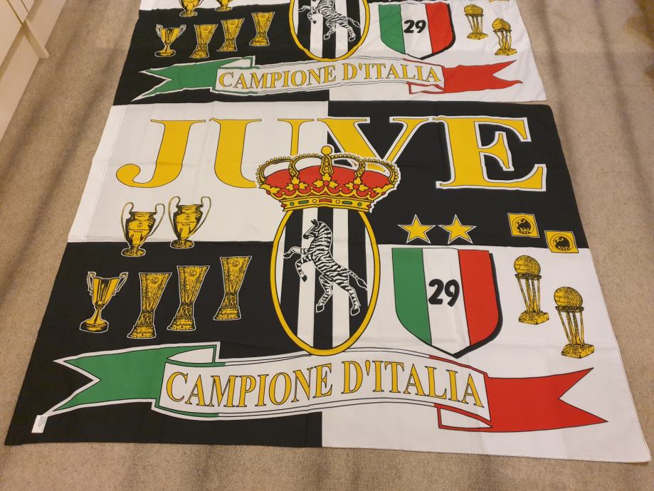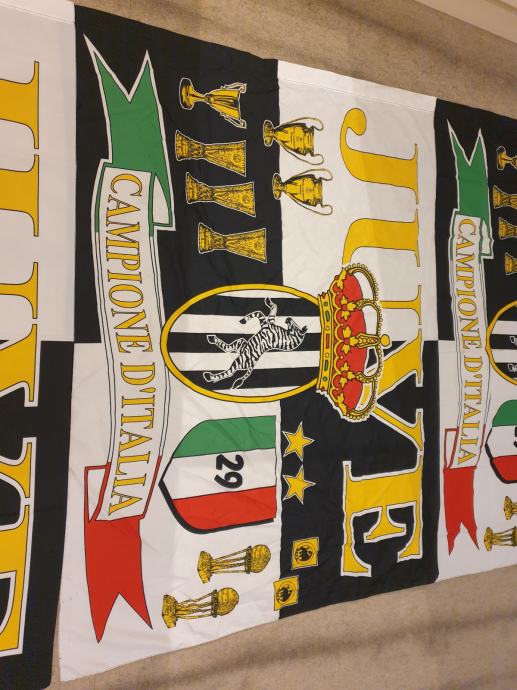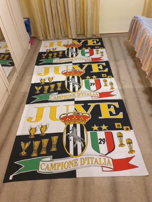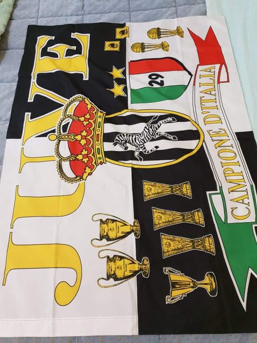 Navijačka svilena zastava za na motku od nogometnog kluba juventus dimenzija 100/130 nikad korištena iz moje kolekcije.