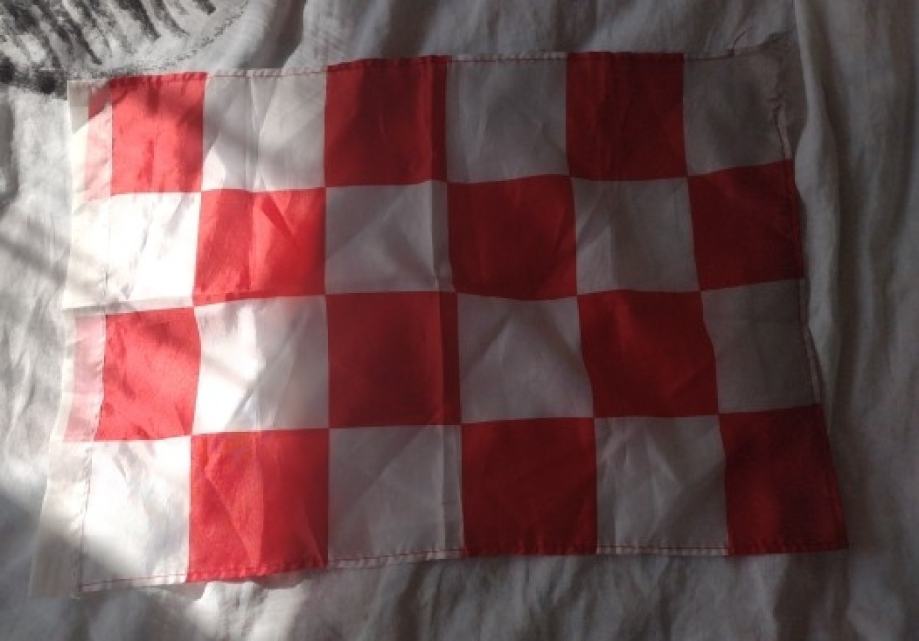 Malena rabljena platnena zastavica s prepoznatljivim crveno-bijelim hrvatskim kockicama za prave navijače. Zastavica je korištena ali još uvijek u dobrom stanju za navijačke svrhe. Idealna za podršku hrvatskoj reprezentaciji na sportskim događanjima.