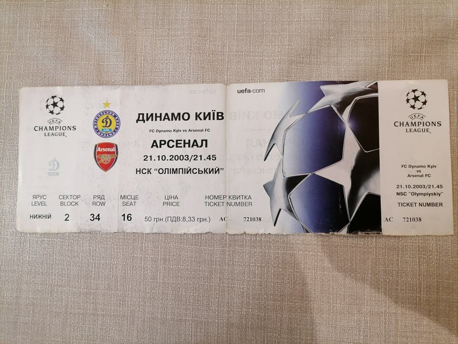 Naime, bio sam na utakmici UEFA Lige prvaka sad već davne 2003./2004. Dinamo Kijev - Arsenal (prilog: ulaznica).