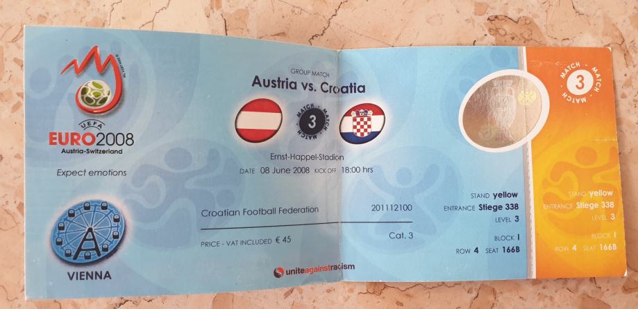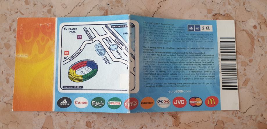 Nepocijepana ulaznica Austrija-Hrvatska,Nogometno Europsko Prvenstvo u Austriji i Švicarskoj 2008g.