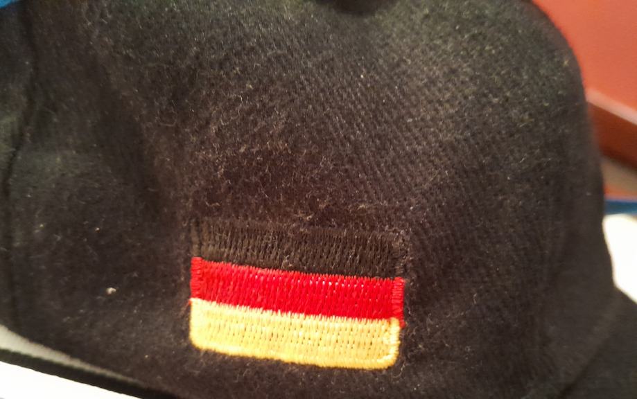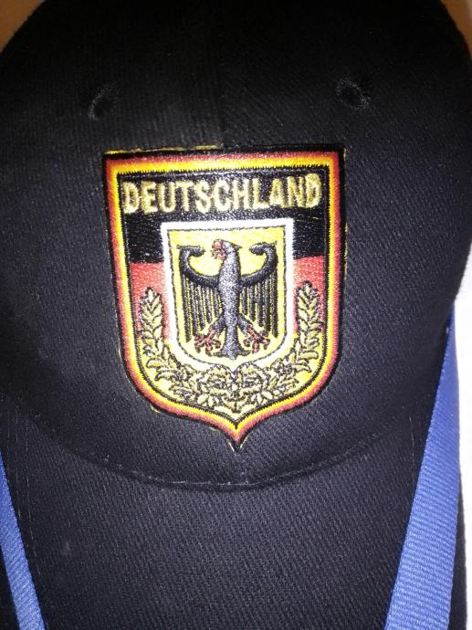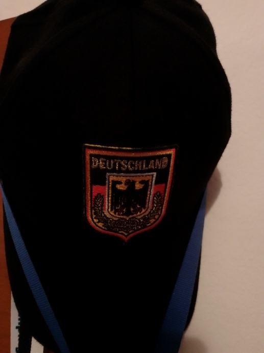 Nova šilterica nenošena, crne boje sa grbom. Sa lijeve i desne strane njemačka zastava.