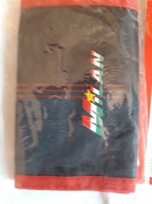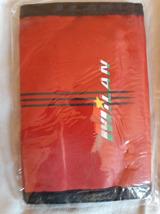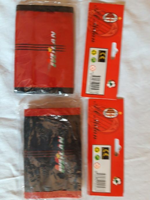 U crvenoj i crnoj boji. Na čičak. Navijački. Puno pretinaca. Zapakirano.