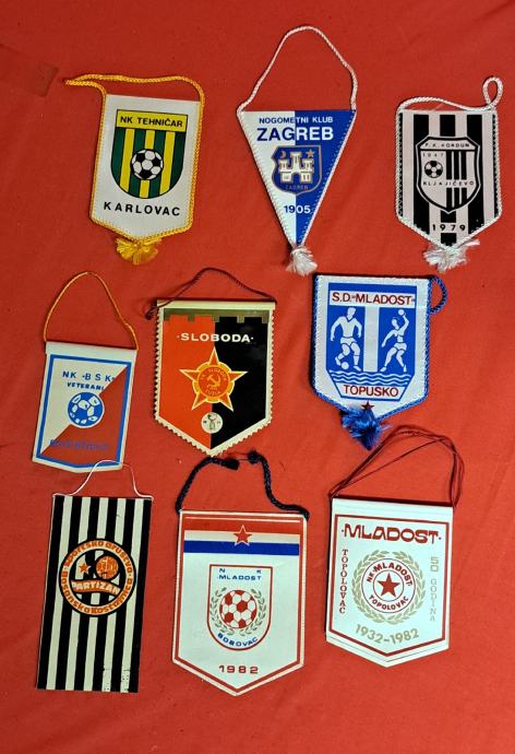 cca 50 sportskih zastavica...cjena za cjeli lot 100e...moze i pojedincno cjena od 3.do 5e...ovisino zastavici.....Stanje kao na slikama...0977983290