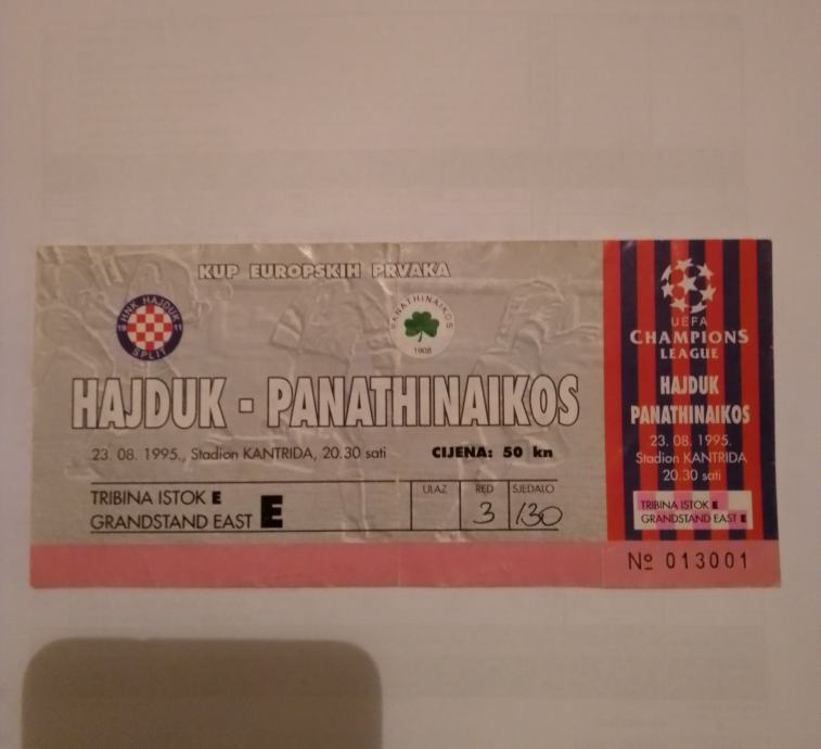Liga prvaka, kvalifikacije 1995. Kantrida, rijetka ulaznica.