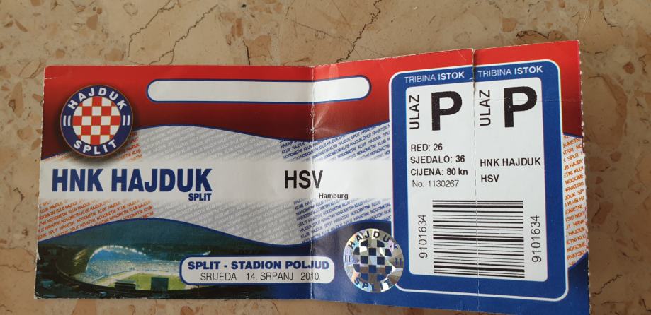 Ulaznica HNK Hajduk - HSV Hamburg.