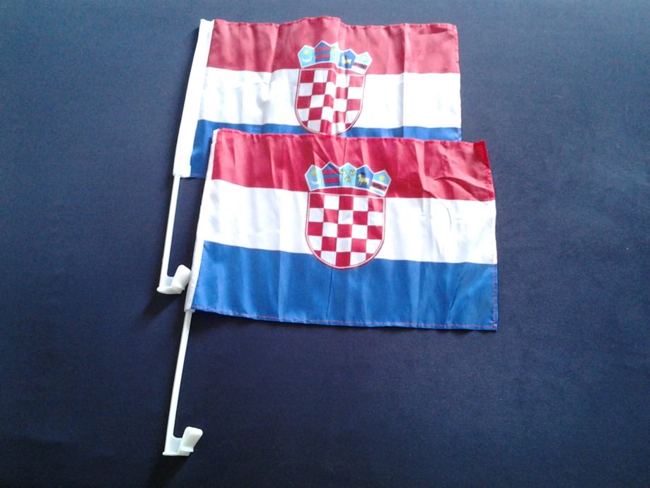 ZASTAVA ZA AUTO HRVATSKA, DIMENZIJE 45X30 CM. NOVO, NEKORIŠTENO, ZAPAKIRANO. CIJENA 5 EUR KOM.