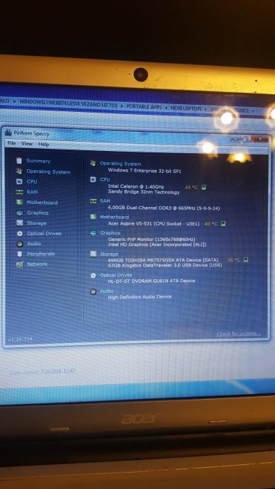 Prodaje se navedeni laptop u dijelovima. Tocna oznaka mog laptopa V5-531 ali većina dijelova je kompaktibilna i sa V5-571 i V5-471 modelima pa slobodno upitajte za dio koji vas zanima. Imam 2 ista komada u dijelovima