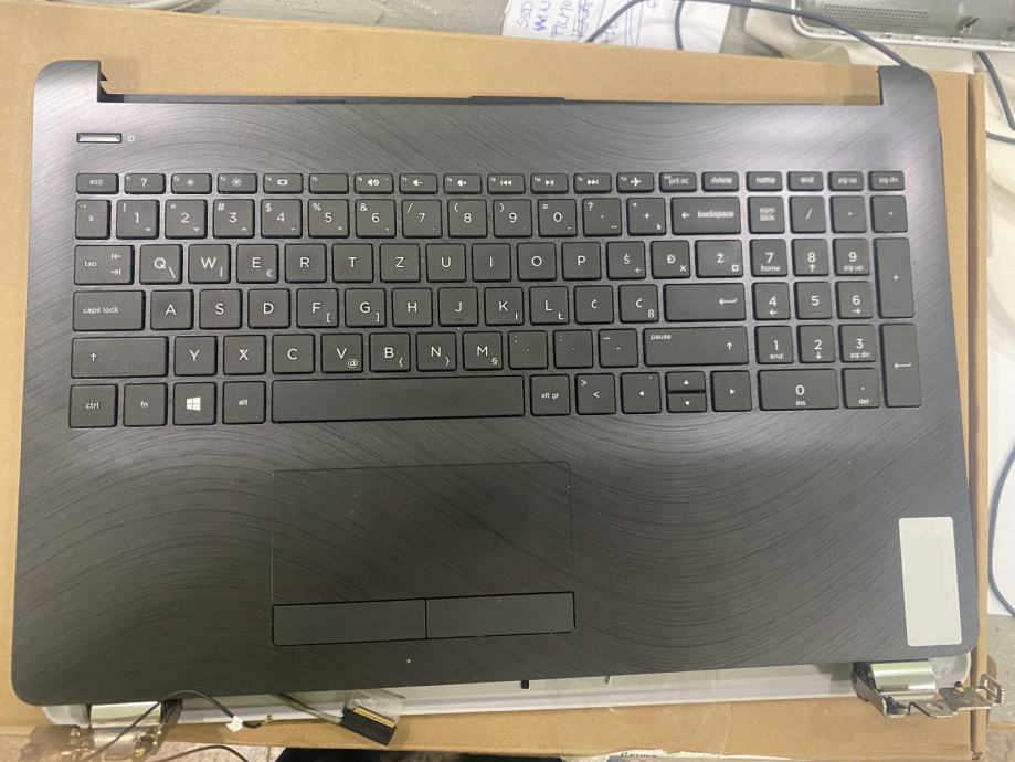 Što se tiče tipkovnice (slika 3), ona je besprijekorna ali je integrirana u palmrest, koji ima oštećenja prihvata za pante i to s obje strane (vidi se na slikama 4 i 5). Ako netko hoće to lijepiti ili skidati tipkovnicu (lemilicom, dakako), prodajem za 15 € komplet palmrest sa touchpadom i HR tipkovnicom.