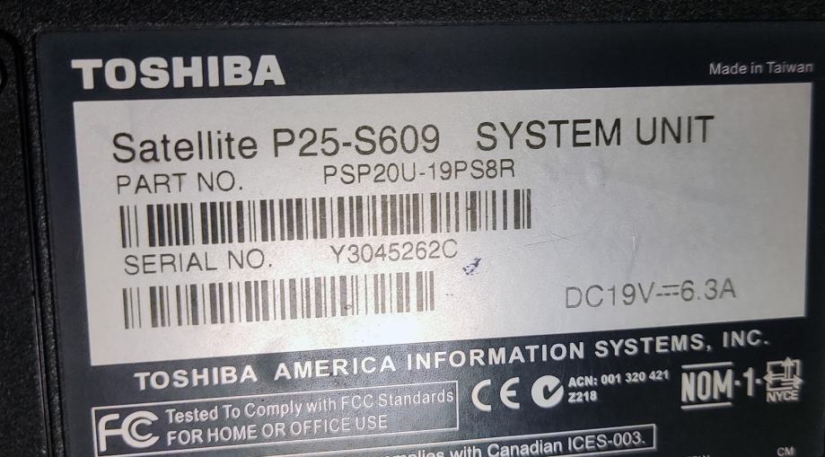 Laptop notebook TOSHIBA Satellite P25-S609 PSP20U-19PS8R za dijelove