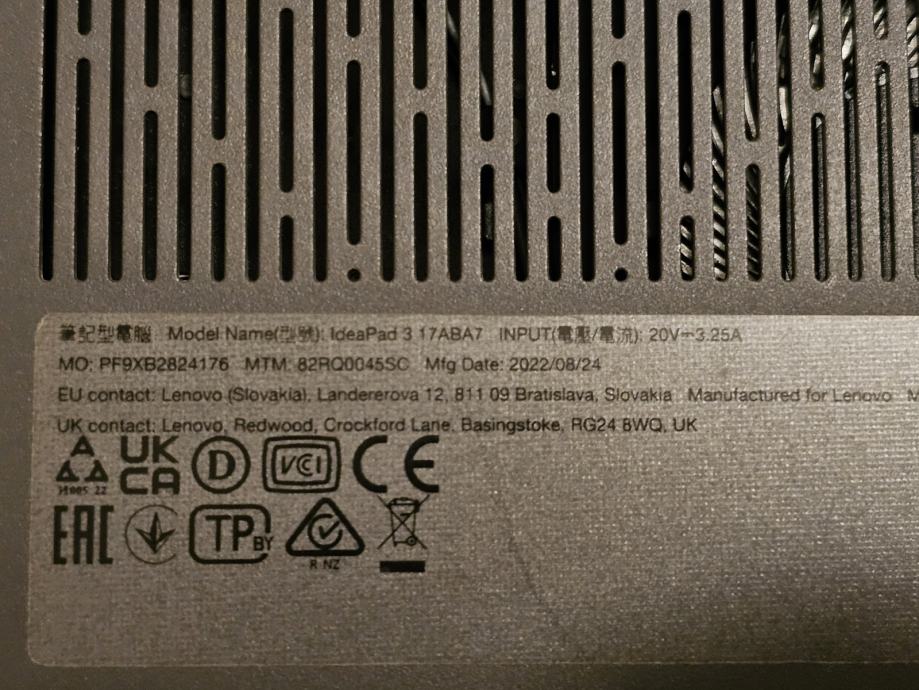 Na prodaju je neispravan Lenovo Ideapad 3 17ABA7. Na laptopu je matična ploča neispravna, ostali dijelovi netestirani. Laptop dolazi bez memorije, diska, adaptera i šarafića. Prodaje se samo u kompletu.