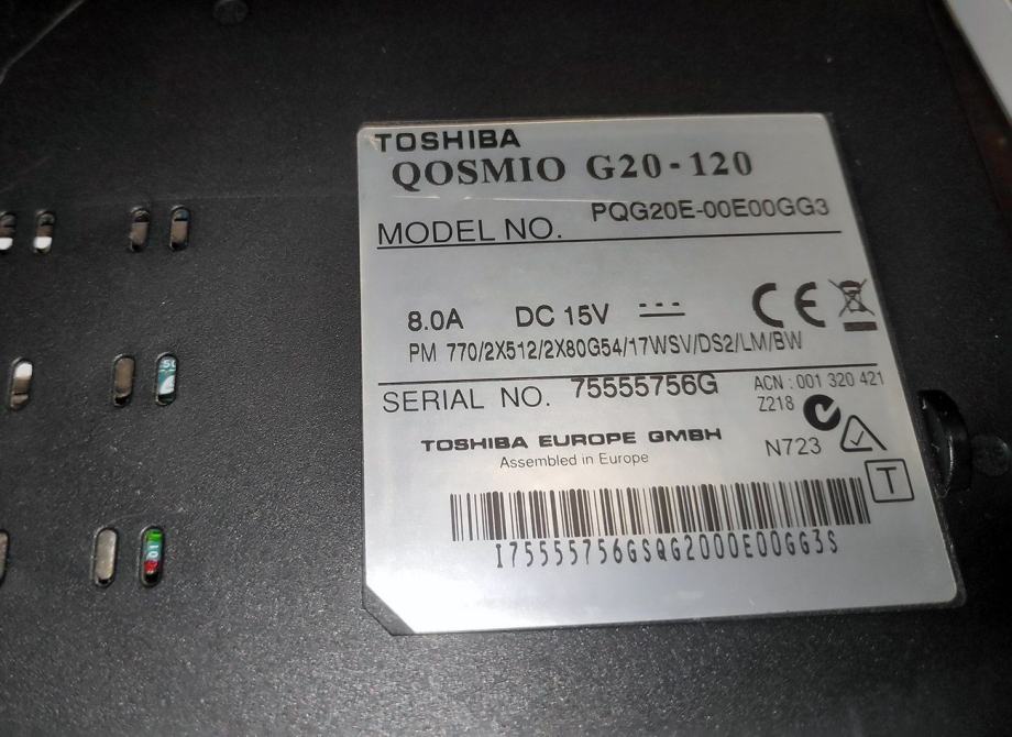 Toshiba Qosmio G20-120 laptop notebook prijenosno računalo