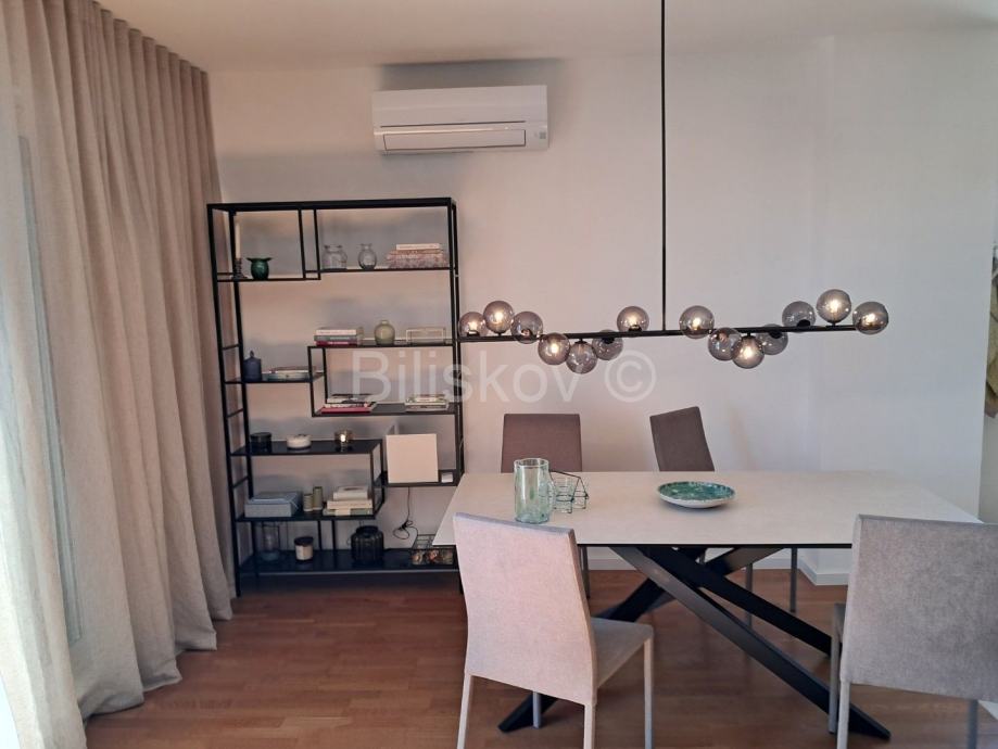 Klimatiziran je, kompletno dizajnerski namješten, useljiv odmah i dostupan isključivo dugoročno.