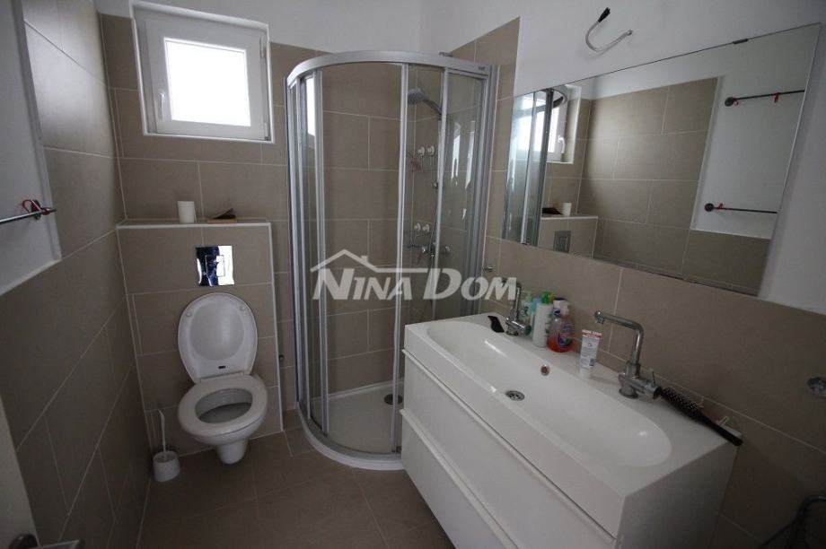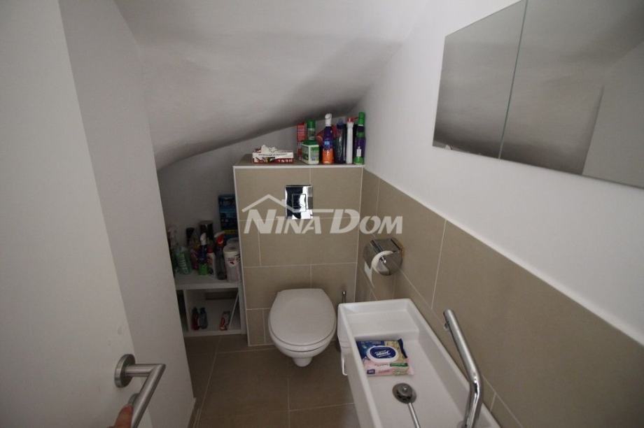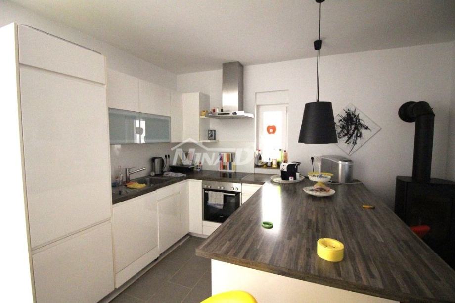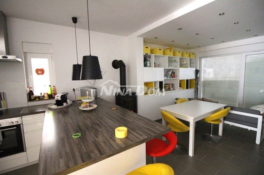 Kat: hodnik, kupaona, dvije sobe, kuhinja s dnevnim, natkrivena terasa. Klimatizirana, sobe i kupaonica na katu posjeduju podna grijanja.