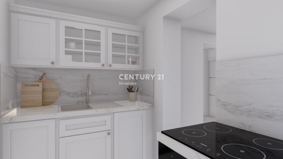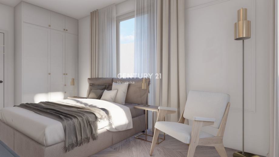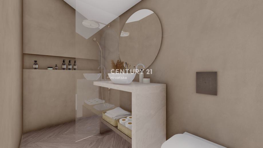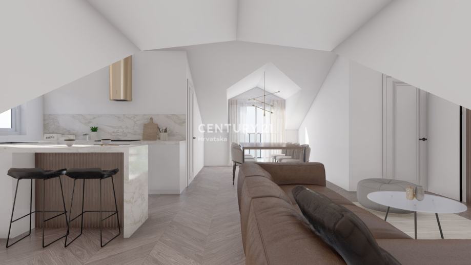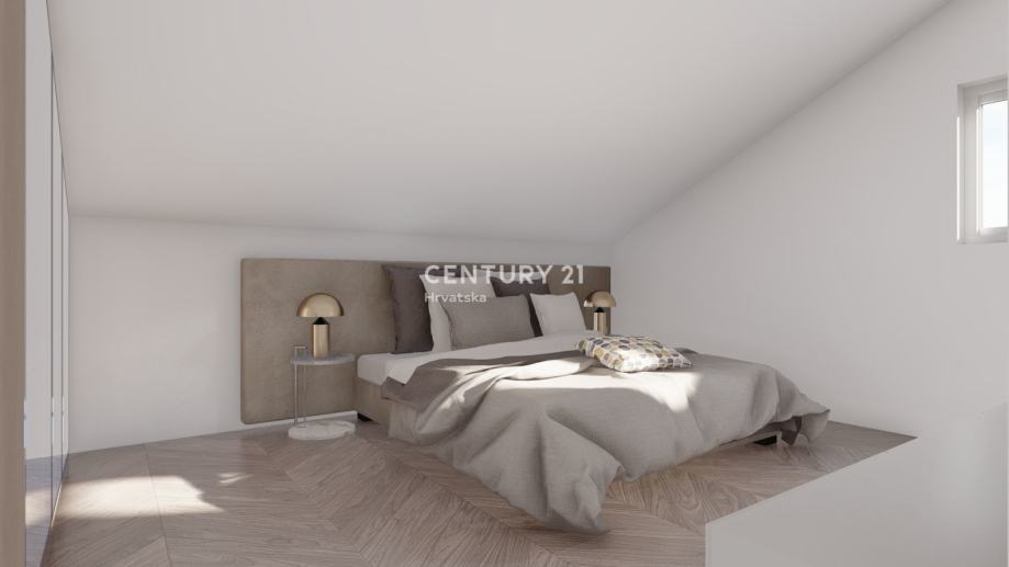 Potkrovlje se sastoji od velikog dnevnog boravka sa blagovaonom i kuhinjom, dvije spavaće sobe, praonice, dva balkona, kupatila i wc-a.