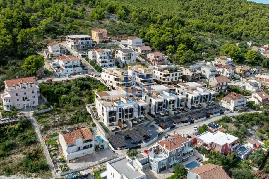 U neposrednoj blizini stambenog kompleksa nalaze se trgovina, ljekarna te razni sadržaji poput kafića i restorana, što ovu lokaciju čini izuzetno praktičnom za svakodnevni život. Također, u blizini je autobusna stanica s linijom koja vozi direktno do kolodvora u Trogiru, odakle su dostupne veze prema drugim destinacijama. Tijekom ljetne sezone brodska linija omogućuje brzi dolazak na splitsku rivu, dok je Splitski aerodrom udaljen svega 10–15 minuta vožnje.