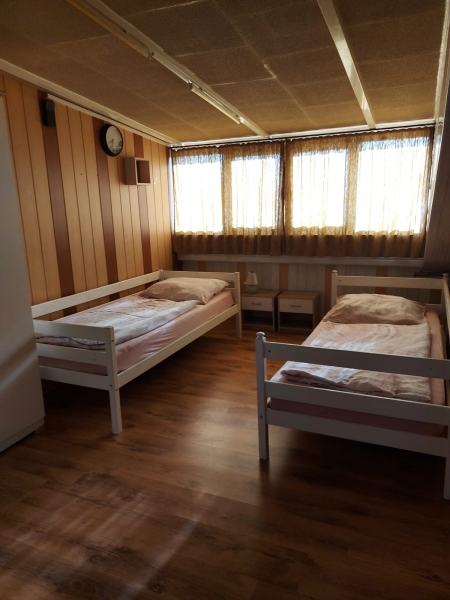 Hostel ima tri etaze, svaka etaža ima 200m2, u prizemlju se nalazi recepcija, kuhinja, dnevni boravak, hodnik, soba sa 6 kreveta, dvije klasične sobe, 4 kupaonice, 1 wc