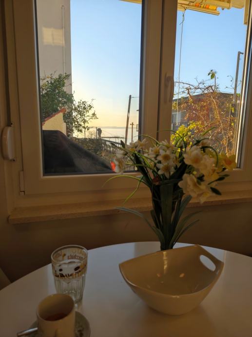 Prodaje se funkcionalan stan na atraktivnoj lokaciji Podstrane, samo 150 metara od mora! Stan se sastoji od 2 spavaće sobe, kupatila, hodnika, kuhinje, dnevnog boravka i blagovaonice iz koje se izlazi na prostranu terasu. S terase imate direktan pristup vrtu, kaminu i ostavi.