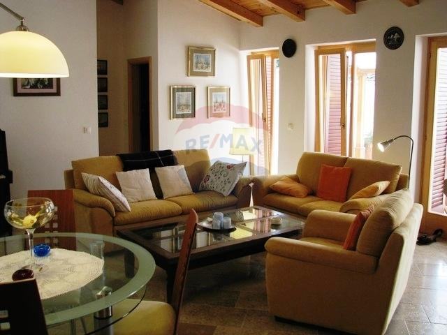 Kuća se sastoji od četiri spavaće sobe, moderno opremljene kuhinje te dnevne sobe, opremljene kaminom koja se nalazi u prizemlju.
