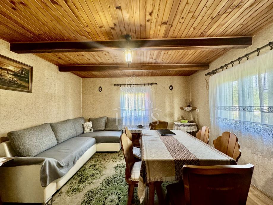 Drveni objekt sastoji se od ulaznog prostora, dnevnog boravka s blagovaonicom, kuhinje, 2 spavaće sobe i kupaonice. Objekt je izgrađen 1957. godine i prodaje se namješten.