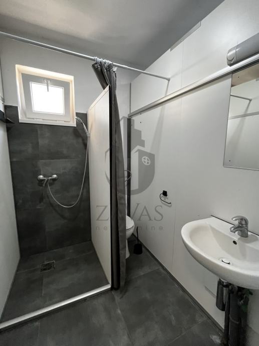 U prizemlju se nalazi veliki dveni boravak s integriranom kuhinjom, veliki sanitarni čvor (2 wca, 3 tuš kabine te 2 umivaonika), dvije velike spavaće sobe.
