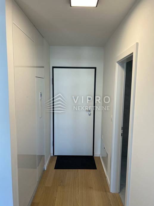 Stan se sastoji od hodinka koji je opremljen ugradbenim ormarom, prostranog dnevnog boravka, kuhinje i blagovaonice, spavaće sobe, kupaonice i lođe.
