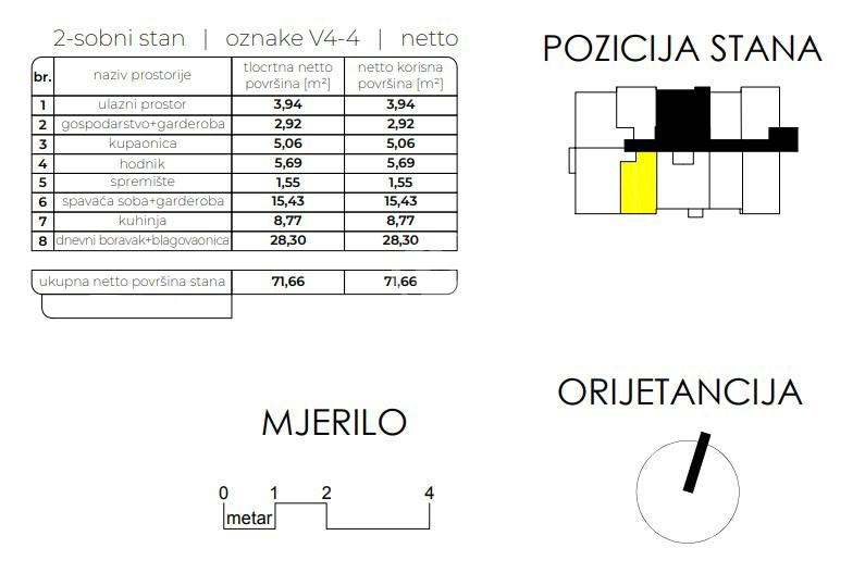 2 soban stan 71,66 m2 na 4. katu poslovno - stambene nekretnine, lift, vrhunski materijali, parking u podzemnoj garaži.
