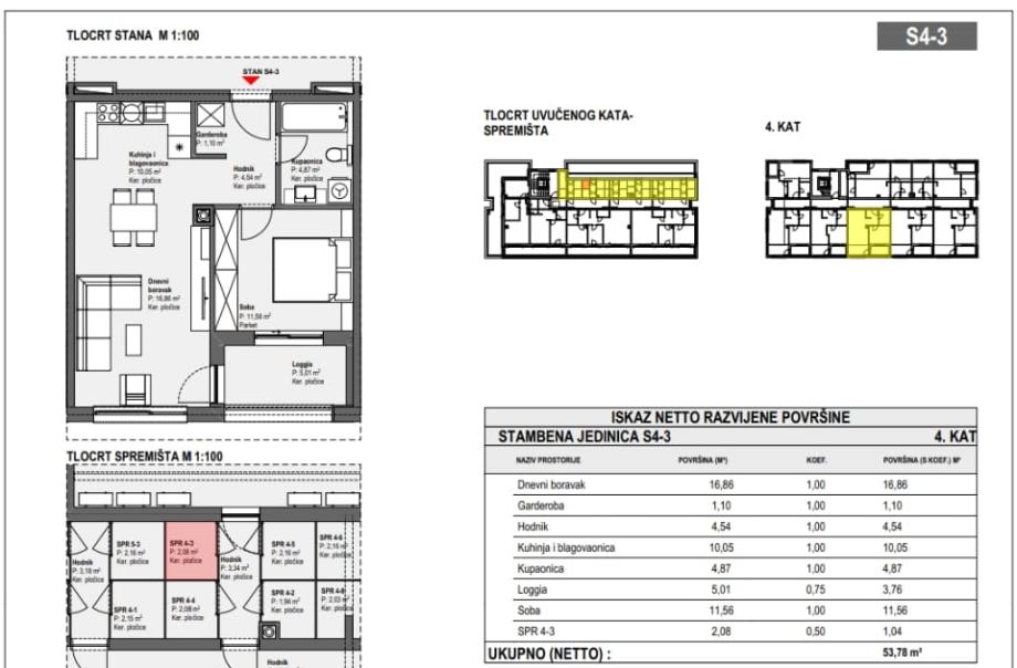 **Ukupno netto s koeficijentima: 53,78 m²**