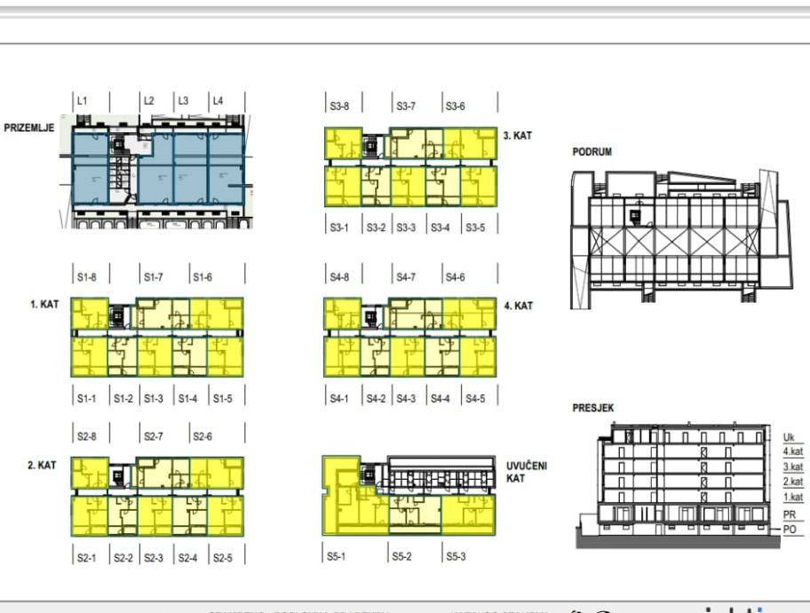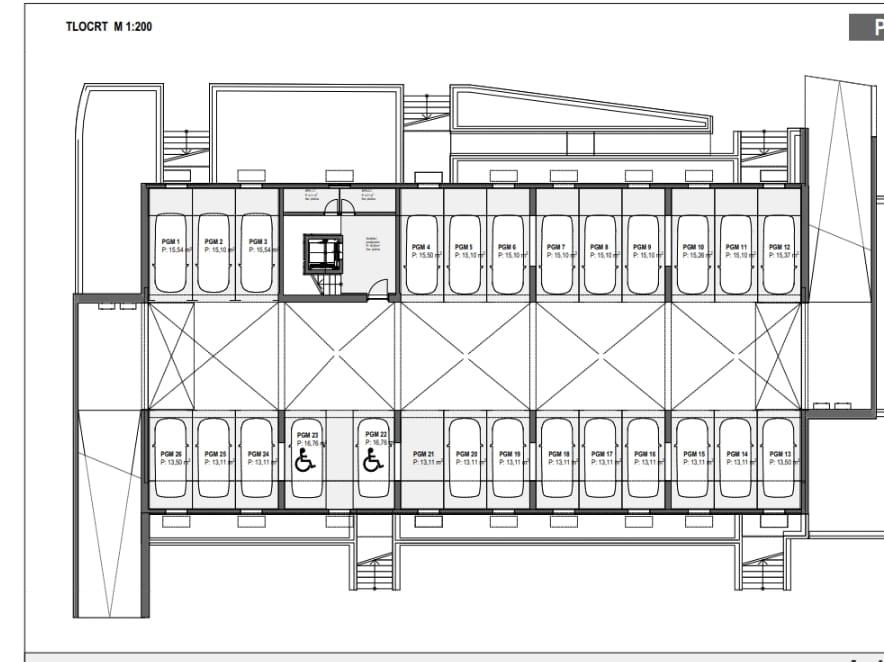 * U projektu na raspolaganju: 26 garažnih i 25 vanjskih parkirnih mjesta (obračun po koeficijentu; vanjsko u naravi 14,84 m²)