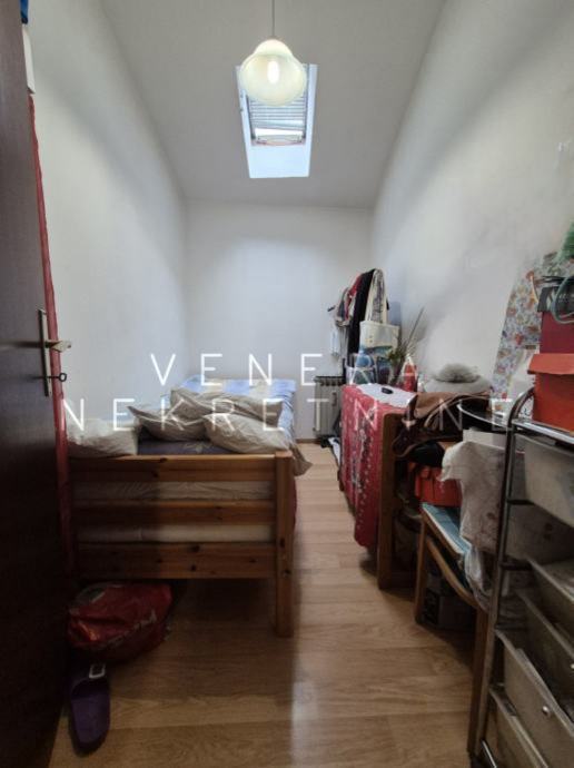 Stan se sastoji od hodnika, ostave, kuhinje, odvojene spavaće sobe, dnevnog boravka, zasebnog spremišta u podrumu zgrade te zajedničke ostave u potkrovlju zgrade.
