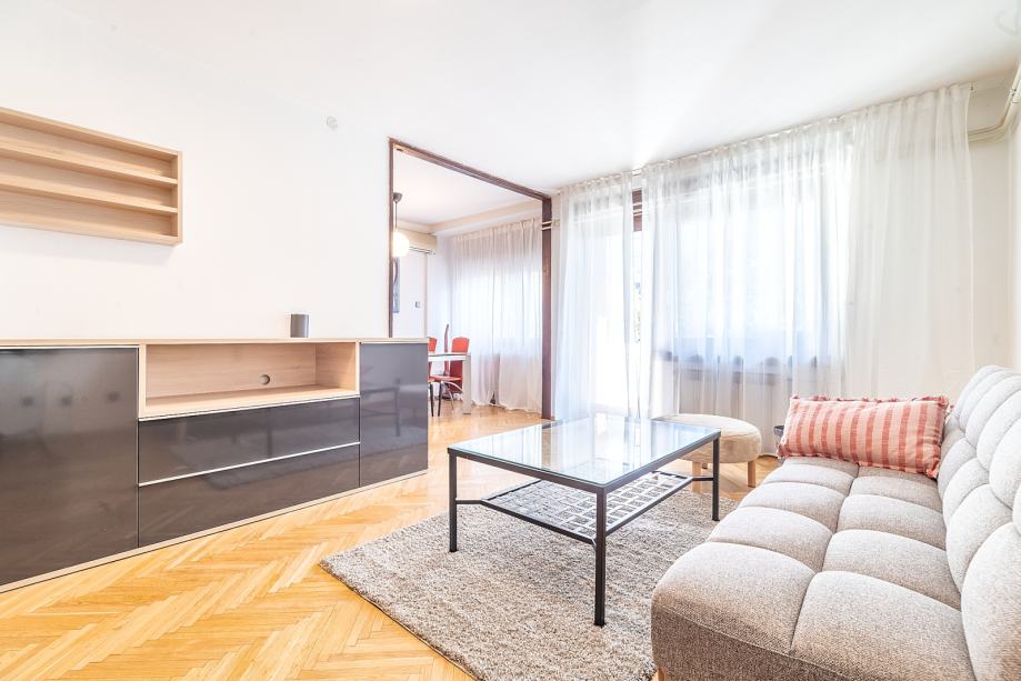 Iznajmljuje se potpuno namješten, izuzetno prostran i svijetao 2-sobni stan na drugom katu zgrade s liftom. Uživaj u svim prednostima života u centru Tresnjevke! Stan se nalazi u mirnoj ulici, okružen zelenilom, a opet na samo nekoliko koraka od svih bitnih sadržaja.