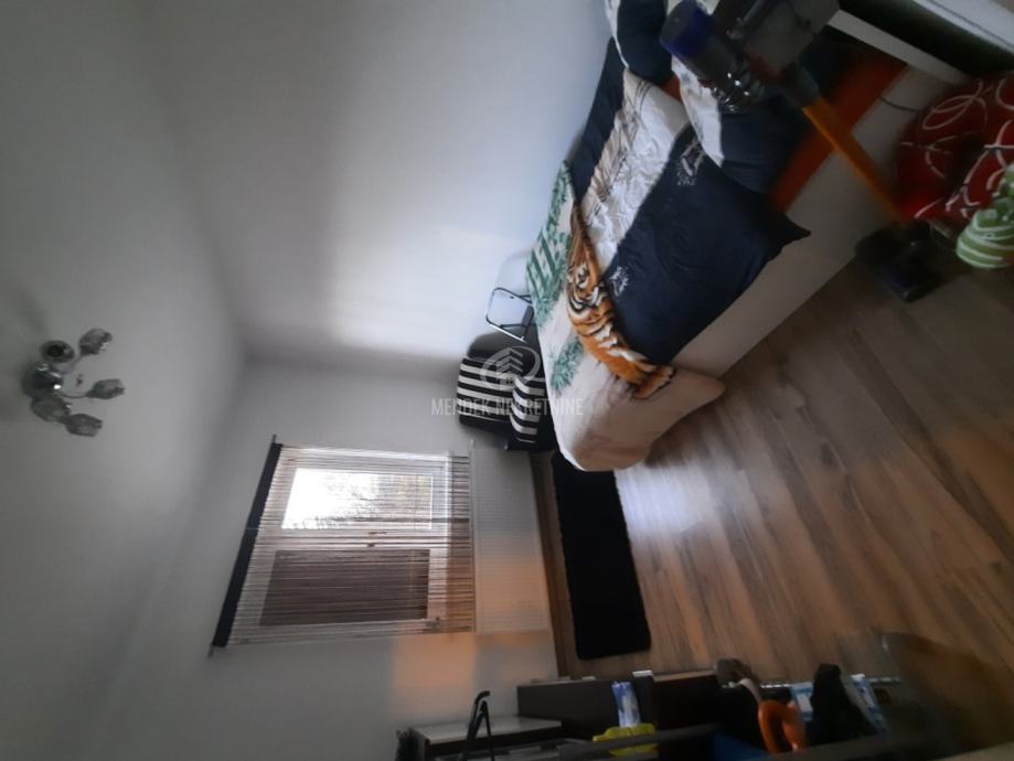 KAT : hodnik, 2 spavaće sobe ( 1 sa balkonom ), kupaonica, spremište, dnevni boravak sa blagovaonicom, balkon, kuhinja