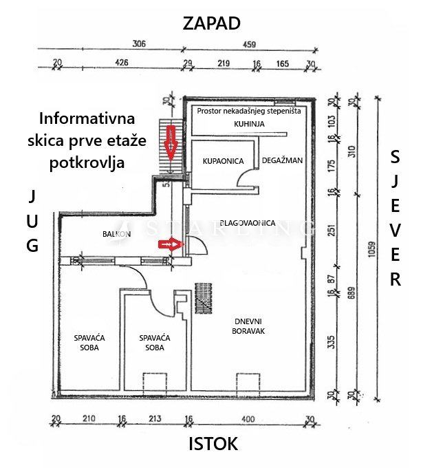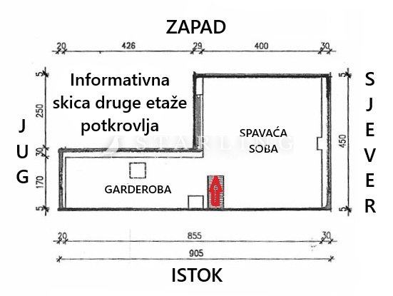 -druga etaža potkrovlja tlocrtne površine 26 m2