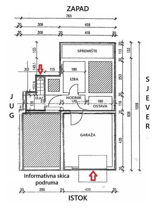 Podrum ima ulaz s garažne i dvorišne strane (vanjski).