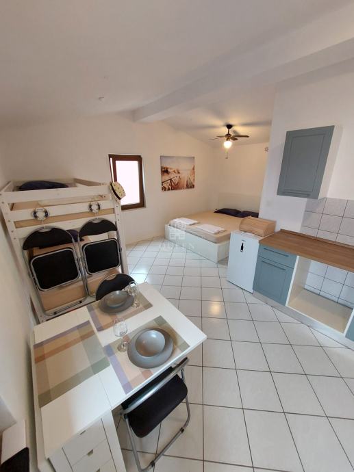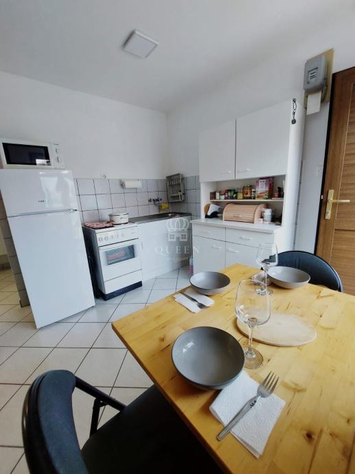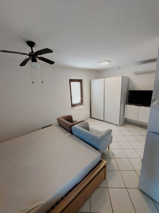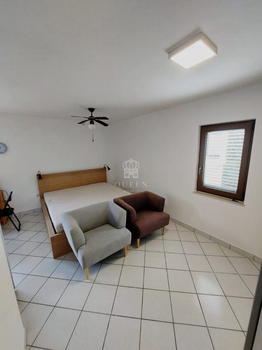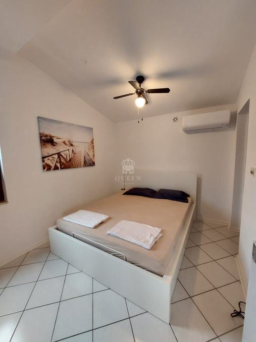 Jedan apartman nalazi se u prizemlju dok se drugi smjestio na katu stambene zgrade, do njega se penje vanjskim stepenicama. Oba apartmana su renovirana, klimatizirana i spremna za useljenje. Apartman je koncipiran kao open space garsonjera u kojoj je smještena kuhinja, bračni krevet, blagovaonski dio, kupoanica te terasa.