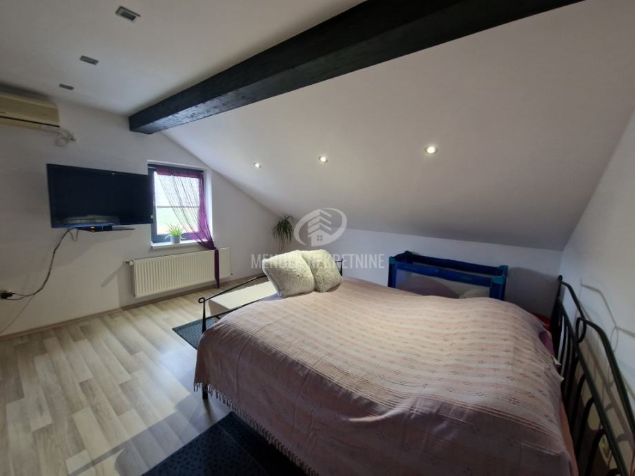 hodnik sa izlazom na balkon. Stolarija PVC/drvo, komarnici, 2 klima uređaja, etažno plinsko grijanje, solarni paneli, nexe crijep, trofazna struja 29,90 KW