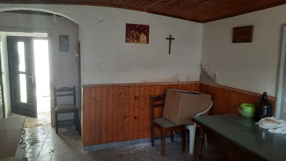 Kuća se sastoji od konobe i ljetne kuhinje u prizemlju iz koje se izlazi na prostrano dvorište u kojem je još jedna velika ostava sa terasom koja ima pogled na.more.Stubištem se dolazi do stambenog dijela sa kuhinjom ,blagavaonicom,kupaonicom i 3 spavaće sobe.Također je tu i terasa.