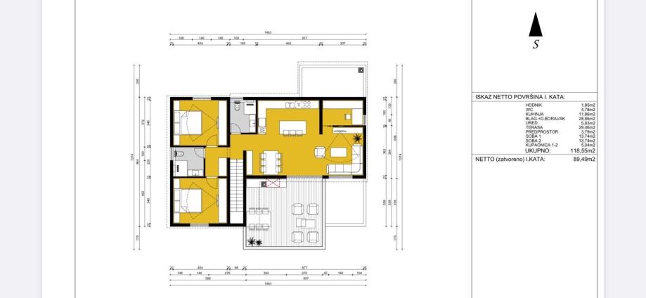 Ukupna bruto površina terena je 927 m2