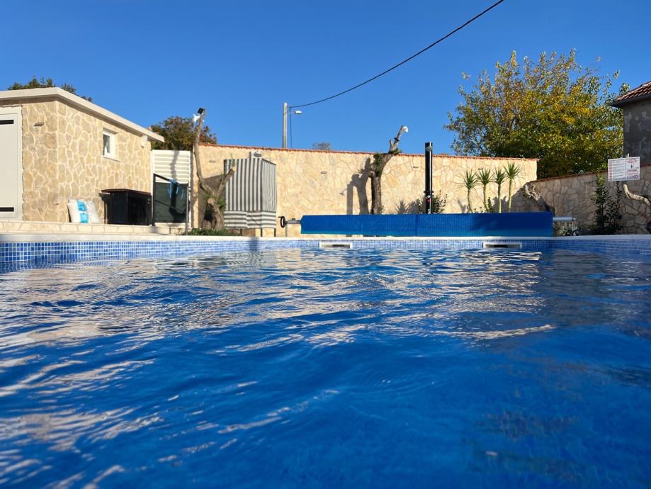 Bazen Je opremljen najmodernijom tehnikom sa automatskim doziranjem pripravaka za kvalitetu vode i sa toplotnom pumpom za grijanje vode u njemu kao i sa solarnim rolo- pokrivačem ! Suvremena keramika i svjetlo daju posebni ugođaj !