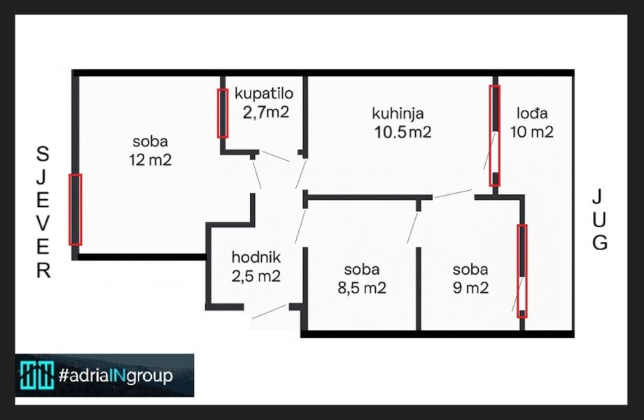 Stan ima sjever - jug orijentaciju, što osigurava dovoljno dnevnog svjetla.