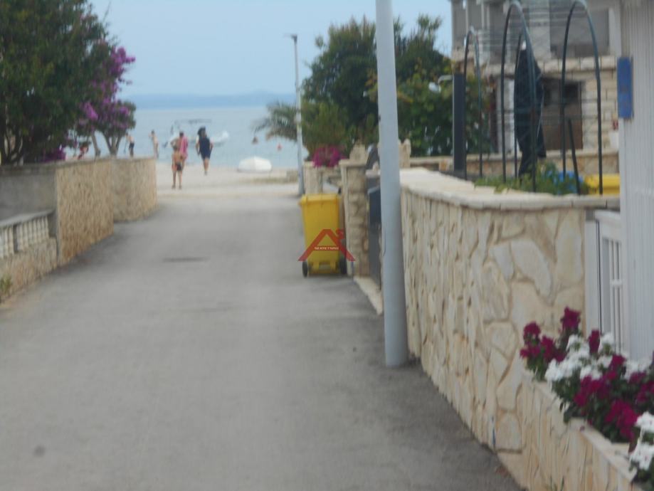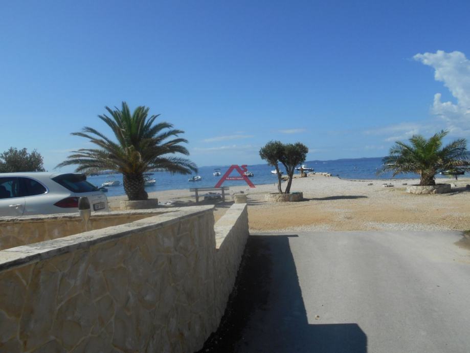 U kratko; Vir, južna strana, kuća sa 3 apartmana, 60 koraka do mora, gradski vodovod i kanalizacija, blizina trgovine, autobusne stanice, pekare, restorana, namještaj u cijeni.